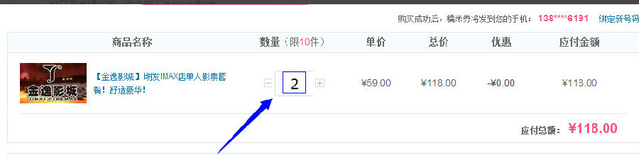 3、进入详细地介绍页面后,可以点击“抢购”或者“加入购物车”。我这里点击“抢购”直接购买电影票。
