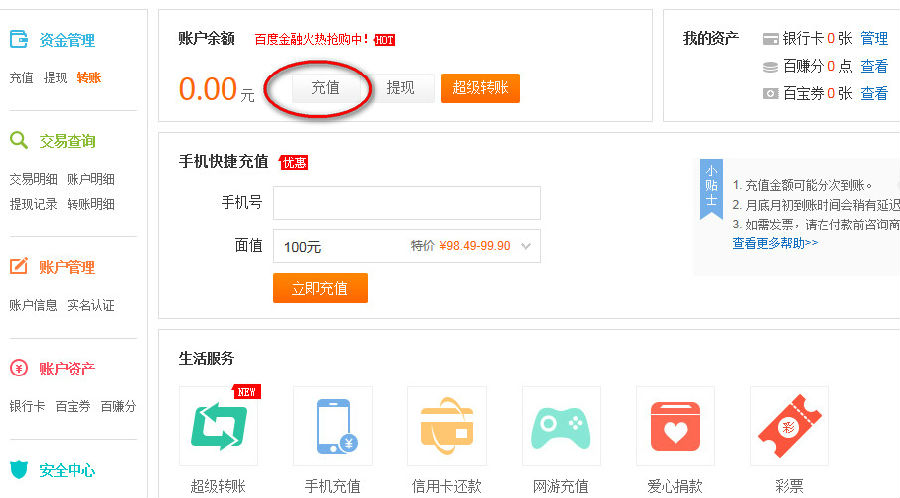 百度钱包是百度旗下一个金融理财的软件,它提供提现、转账、缴费、充值等功能。下面小编就为大家介绍一下百度钱包怎么充值的,希望能帮到大家