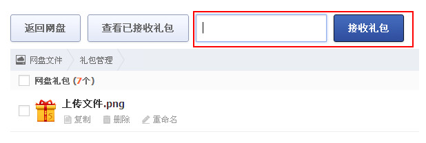 在115网盘中有一个网盘的礼包功能,用户将网盘中的文件和文件夹打成一个礼包,每个礼包将生成一个唯一的礼包码,将礼包码发送给朋友和亲人他们就可以下载你的分享的文件了