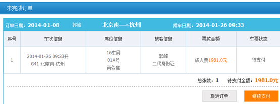 十四、不要等太长时间才付款,旺季不会等45分钟才掉票,5分钟内付款完毕绝对没有问题