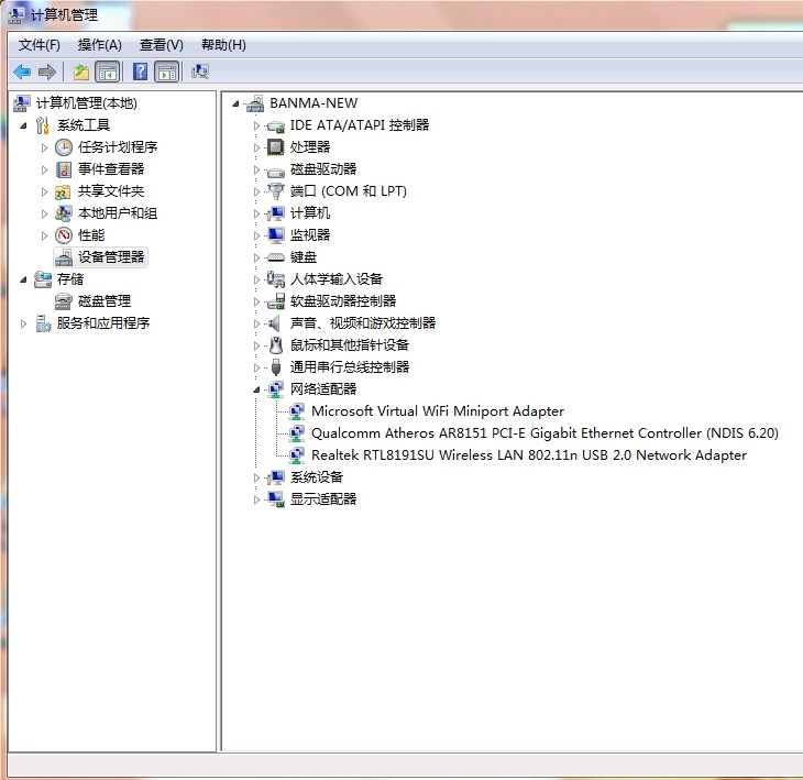 右击计算机,点击管理——设备管理器——网络适配器,鼠标右击上面的扫描硬件驱动~要多扫描几次哦!