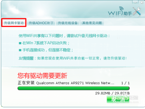 3、待驱动下载完成后,点击“安装”按钮进行网卡驱动的升级安装操作。