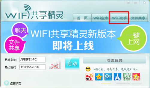 1、打开“Wifi共享精灵”,点击程序主界面中的“Wifi助手”项