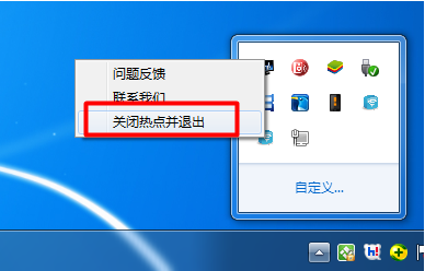 4、接下来重新插拔无线USB网卡,同时右击任务栏处的“Wifi共享精灵”图标,选择“关闭热点并退出”。