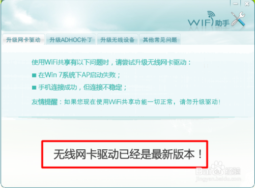 5、最后再重新打开“Wifi共享精灵”,就可以发现已经成功识别无线网卡啦。