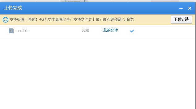 步骤四:点击打开按钮之后,会出现上传文件窗口,选中的文件或者文件夹会自动上传