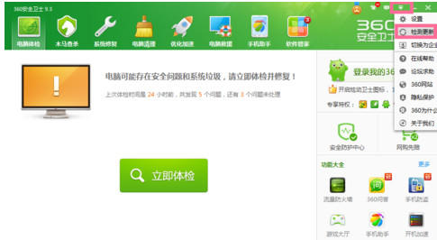 步骤一:首先大家先安装360安全卫士,有360安全卫士的童鞋请将360安全卫士升级到最高版本,没有的童鞋,小编给大家推荐一个地址