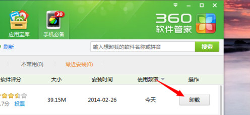 步骤三:打开软件管家,定位到“软件卸载”界面,然后找到“猎豹免费wifi”,如图所示。点击猎豹免费wifi右边的“卸载”按钮,以卸载猎豹免费wifi