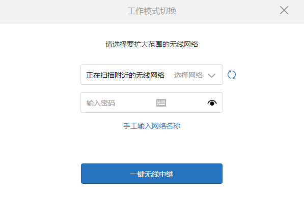 6.点击“下一步”就出来了中继模式的设置页,路由会自动扫描无线信号。