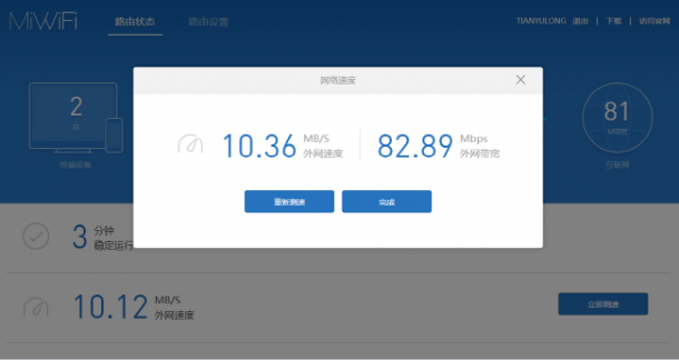 15. 重新连接上宽带,打开路由器,重新测速,一切又回来了,现在你们也都可以自己在路由模式和中继模式间自由选择切换了。