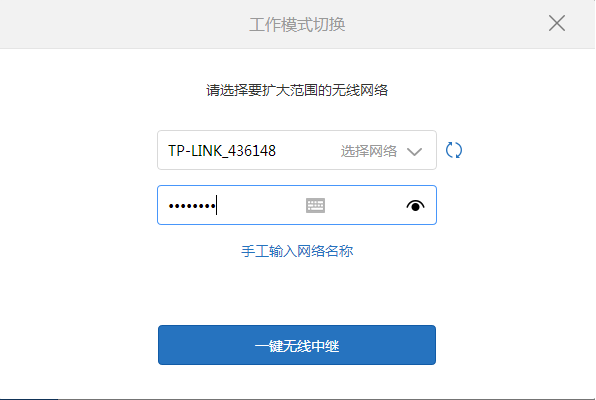 7.搜索完成,会选择信号最强的一个路由,但是如果这个路由不是你要中继的,那么点三角形自己选择,选择好要中继的路由后,输入你无线密码(就是你要中继的那个密码,不过我建议你原来的路由的无线SSID和密码最好和现在的小米路由都设置一样,到时候无线连接会容易些)。