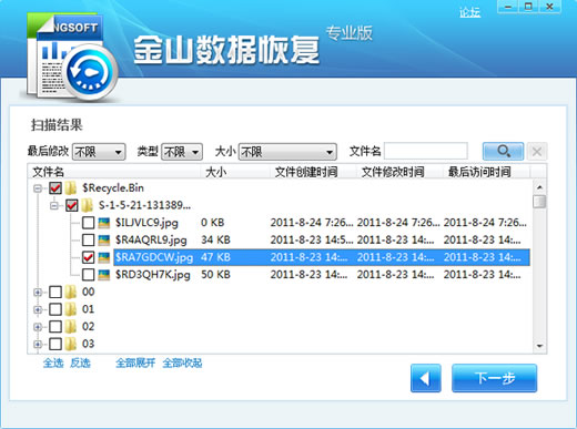 第四步:扫描结束,选择要恢复的文件,点击"下一步"
