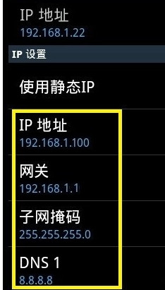 如果无线网络ip为192.168.1.1,则手机中的ip设置为192.168.1.100