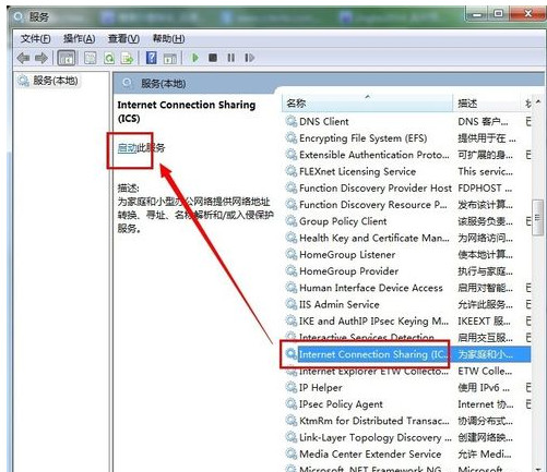第三步:在这里找到“Internet Connection Sharing”服务,点击“启用”按钮。