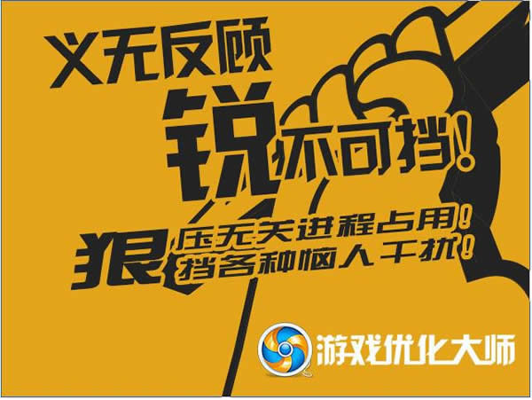 您是否遇到过即将一枪爆敌人头时弹出的广告让您抓狂愤怒?您是否在即将拿下第一滴血时被某个系统文件更新的提示弹出游戏哭笑不得?您是否讨厌猪一样的朋友在您游戏时不断的闪QQ发视频邀请抖动屏幕求聊天?游戏优化大师的防打扰环境给您的感觉一定是像至尊宝打死了耳边嗡嗡嗡嗡的该死苍蝇一般,让您大呼这个世界终于清静了!您开启的世界就是游戏的纯净世界,其他的各种恼人干扰,就让我们像齐天大圣一样挥舞起金箍棒,全部打出我们的游戏世界!