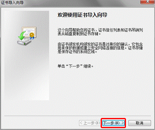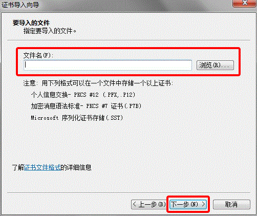 打开导入证书窗口,浏览需要导入证书,添加后导入即可。