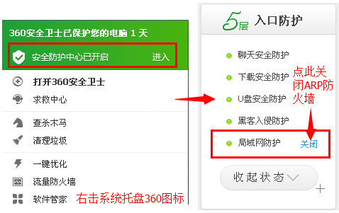 5.关闭360的ARP防火墙。