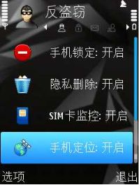 首先把手机锁定、隐私删除、SIM卡监控、手机定位这四项开启,同时记得设定手机丢失后需要删除的文件夹以及监控SIM卡的电话号码。这时,手机的反盗窃功能就开始正常运转了。