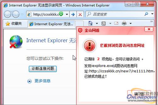 图3 访问恶意网址时,金山网盾也会同步对其进行拦截