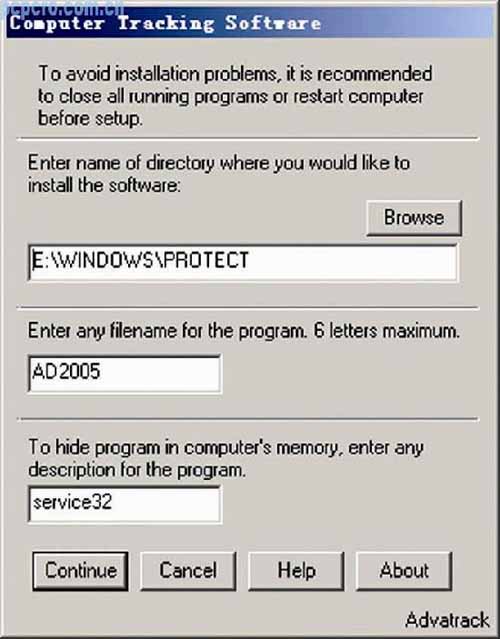 需要指出的是,Advatrack Pro这款软件非常“顽固”,如果不知道用户名将根本无法卸载或强行删除,病毒无法感染,甚至将整块硬盘进行格式化也无效。因此即使重新安装系统也是枉然,这下小偷很快就可以被抓住了。