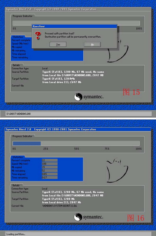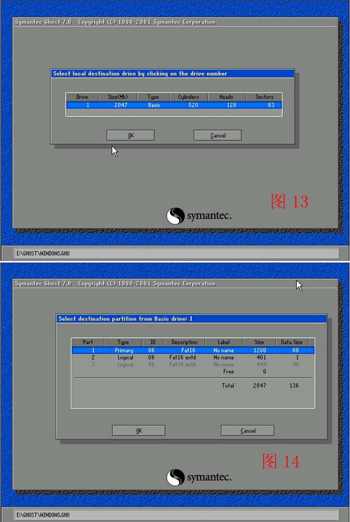再选择还原的硬盘和分区,如图12、13、14。点击Yes按钮即可,如图15。