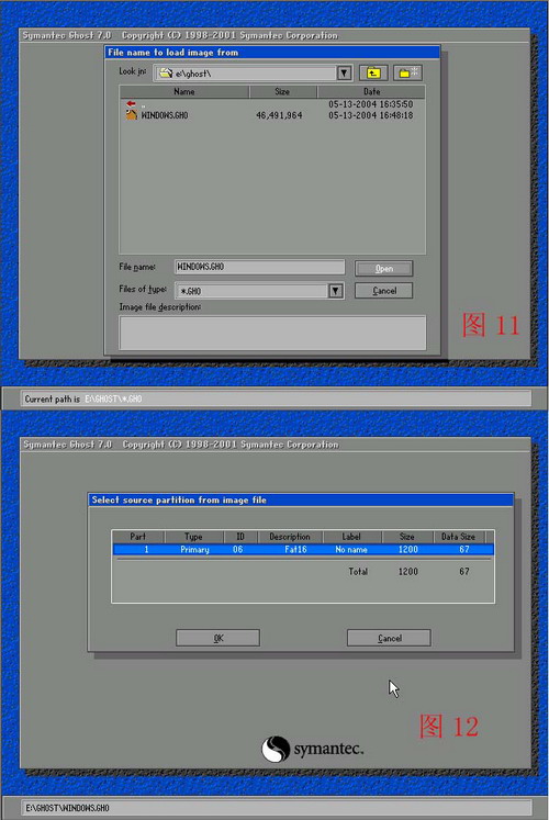 假如你的Ghost.exe存话在E盘的GHOST文件夹中,依次键入如下命令: