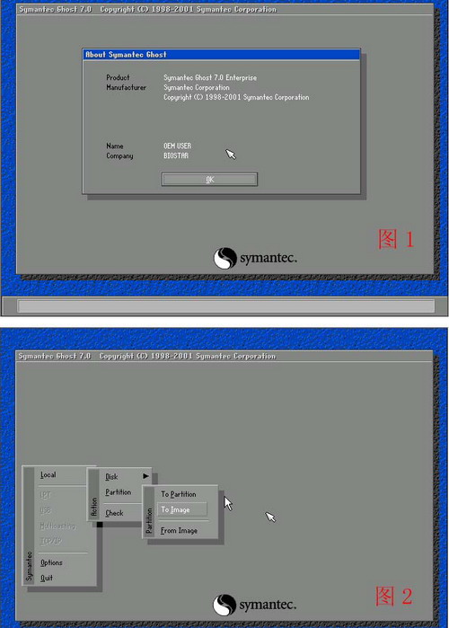 每键入一行命令回一次车,就会出现图1的窗口,回车确认。然后在图2的窗口中选择Local→Partition→To Image菜单,