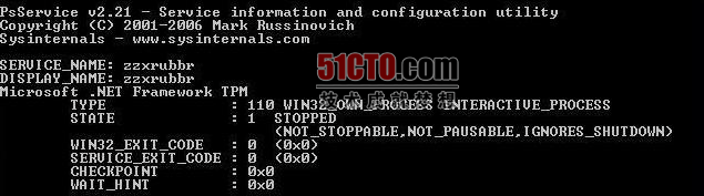 3、使用Microsoft的免费工具psservice来查看该可疑服务的信息,psservice可以从PSTools工具包里找到,下图是使用psservice查看zzxrubbr的结果: