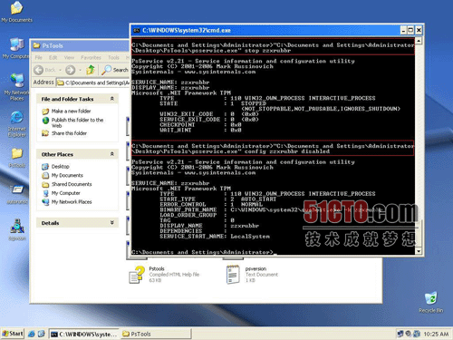1、因为木马程序安装之后生成一个自启动服务,首先要做的就是停止并禁用该服务,依然使用Psservice: