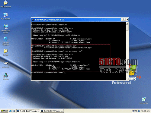 2)重命名法,适用于目标恶意软件无法删除、或内存中无法清除恶意软件进程的场合,有时需要和系统另外一个命令attrib(命令行:attrib–h–s–rtarget)配合使用,改名之后需要重启。重启后目标恶意软件因为文件名已经改变而无法启动,然后用户手动删除恶意软件的可执行文件即可: