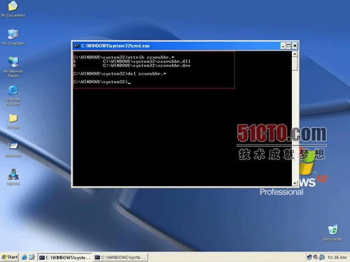 1)删除法,适合于恶意程序在内存中的进程已经停止的场合,使用系统自带的删除命令del: