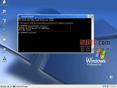 由上图可见dir命令找不到文件,dir的/a参数指显示所有属性的文件,包括隐藏和系统问题,/s参数是搜索的范围包括当前目录的所有子目录。