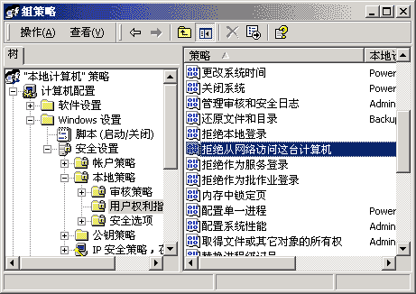 接着打开系统的组策略编辑窗口,再用鼠标逐步展开其中的“本地计算机策略”、“计算机配置”、“Windows设置”、“安全设置”、“本地策略”、“用户权利指派”分支,在弹出的图2界面中,双击右侧子窗口中的“拒绝从网络访问这台计算机”项目,在接着出现的界面中,将guest帐号选中并删除掉,然后再单击一下“确定”按钮,那么WinXP工作站中的共享资源就能被随意访问了。