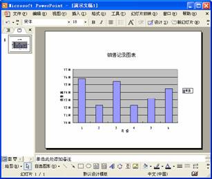 然后切换到PowerPoint窗口中,单击“粘贴”按钮,Excel中的图表就被粘贴到了PowerPoint中。单击PowerPoint中的图表,对其大小和位置进行调整后,其结果如图28-15所示。