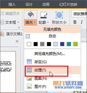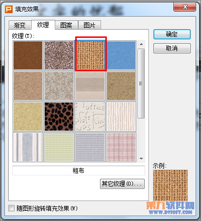步骤二:选择菜单栏的【填充——纹理】,打开填充效果窗口,这里你可以选择自己喜欢的种纹理,这里小编就随便选择一种吧!按确定