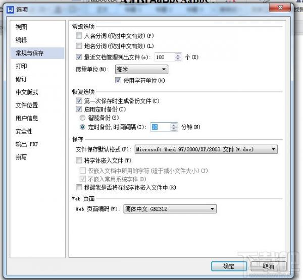 第二步:在“选项”对话框中,选择“常规与保存”选项卡。