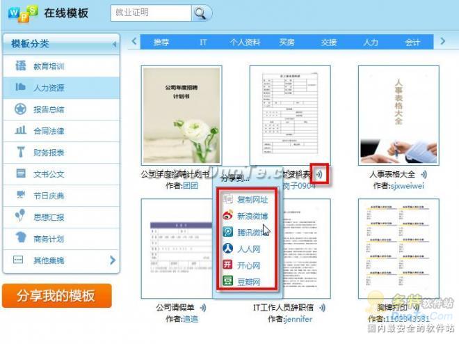 在使用了一个很不错的模板解决了办公难题后,一定希望能够将它快速与分享给其他人,本来嘛Web2.0的理念就在分享。而WPS Office体验版贴心的提供了这样的功能,可以单击模板后面的分享图标(如图4),点击会弹出分享菜单。
