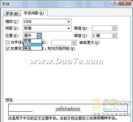 首先,选中要调整距离的带下划线的文字;然后,选择菜单“开始”→“字体”,选择右下角的小箭头,打开“字体”对话框中的“字符间距”选项卡,在“位置”下拉列表中选择“提升”,接着在右侧的“磅值”设定中,默认提升值为“3磅”,如果要加大下划线和文字的距离,就把磅值加大,反之则减小。