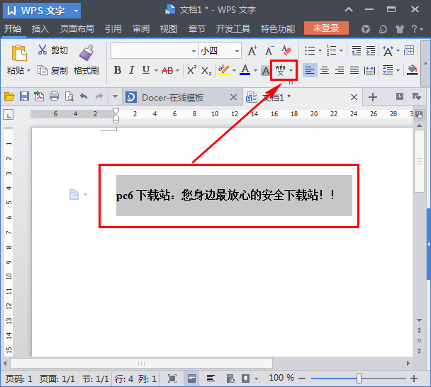 2、选定文文字,然后点击开始菜单中的“拼音指南”工具