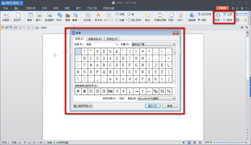 第一步:点击打开文档,点击插入,找到符号