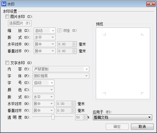 第三步:就会看到自定义水印,在这里你就可以直接设计你想要的水印,设计完成后,点击确定你就可以使用了,如果觉得不好的话点击去掉水印即可