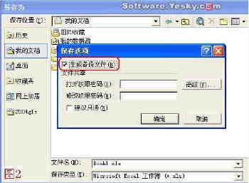 启动Excel2003,执行“保存”(新文件)或“另存为”(原有文件)操作时,打开“另存为”对话框(如图2),按工具栏上的“工具”选项旁的下拉按钮,在随后出现的下拉列表中,选择“常规选项”,打开“保存选项”对话框(参见图2),选中“生成备份文件”选项,确定返回,再保存文档。