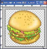 接下来,在工具面板中选择魔术棒工具,单击需要删除的背景色,然后按下“Delete”键,就可将背景色完全删除,这时我们看到的图片应该如图5所示,图中的方格部分就表示该部分是透明的。