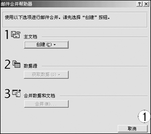 1.在刚建立的“x月工资.doc”文档中,选择菜单栏的“工具/邮件合并”,则出现“邮件合并帮助器”对话框(如图1)。
