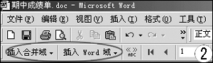 3.在“邮件合并帮助器”对话框中点击“获取数据(G)”下拉按钮,选择“打开数据源(O)…”,在出现打开文件对话框中打开刚保存的Excel电子表格“X月工资.xls”,点击“确定”并在弹出的对话框中点击“编辑主文档(M)”,这时你会发现在工具栏中多了一栏邮件合并工具栏(如图2)。