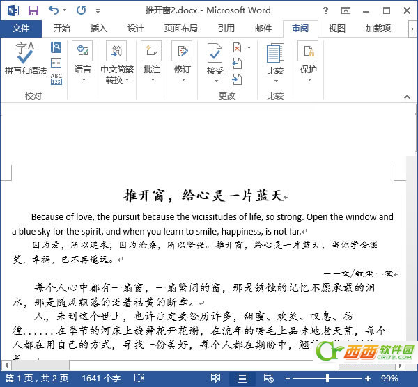 怎么用Word2013自带程序翻译文档,在使用过程中中文翻译英文是一件不错的事情,下面怎么翻译呢,请看教程:
