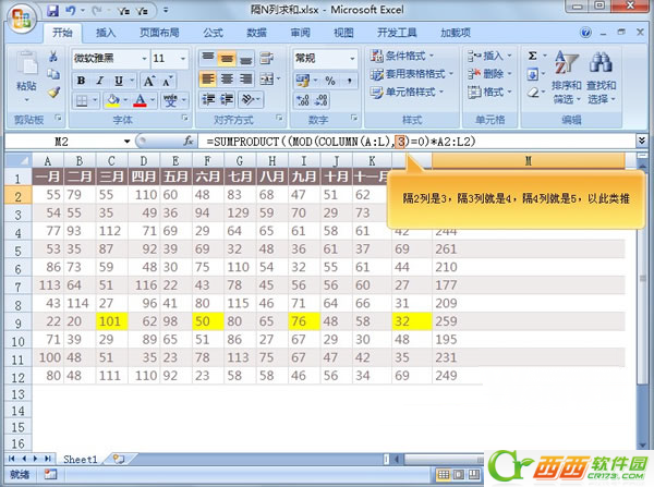 Excel2007中隔N列进行求和如何实现