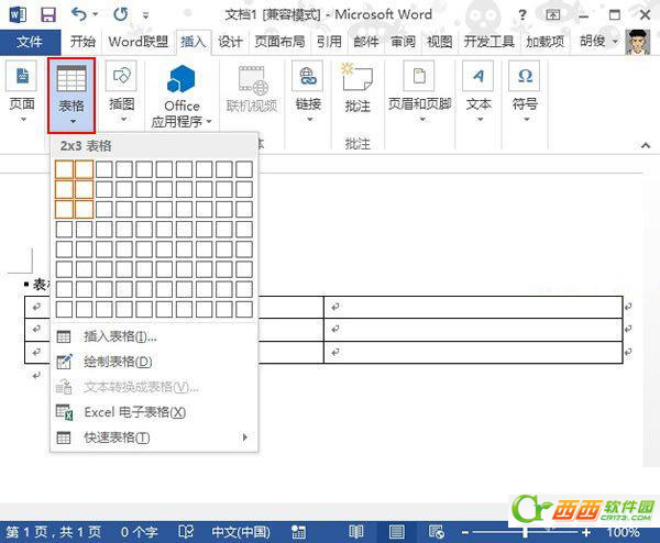 ①启动Word2013,先插入一个表格,单击菜单栏--插入--表格,选择行列数。