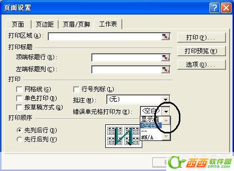 具体操作为:单击“文件→页面设置”命令,在出现的对话框中单击“工作表”标签,切换到“错误单元格打印为”所对应的下拉列表(如图2),根据需要选择“空白”或“--”即可,笔者选择的“--”操作结果(如图3)。确定后退出看看,自己打印的表格是不是漂亮多了。