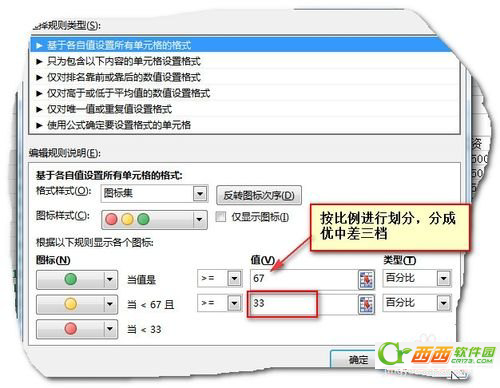 我们用上次课程计算出来的工资,来进行标记,设定前1/3,中间1/3,后1/3各显示一种图标如图